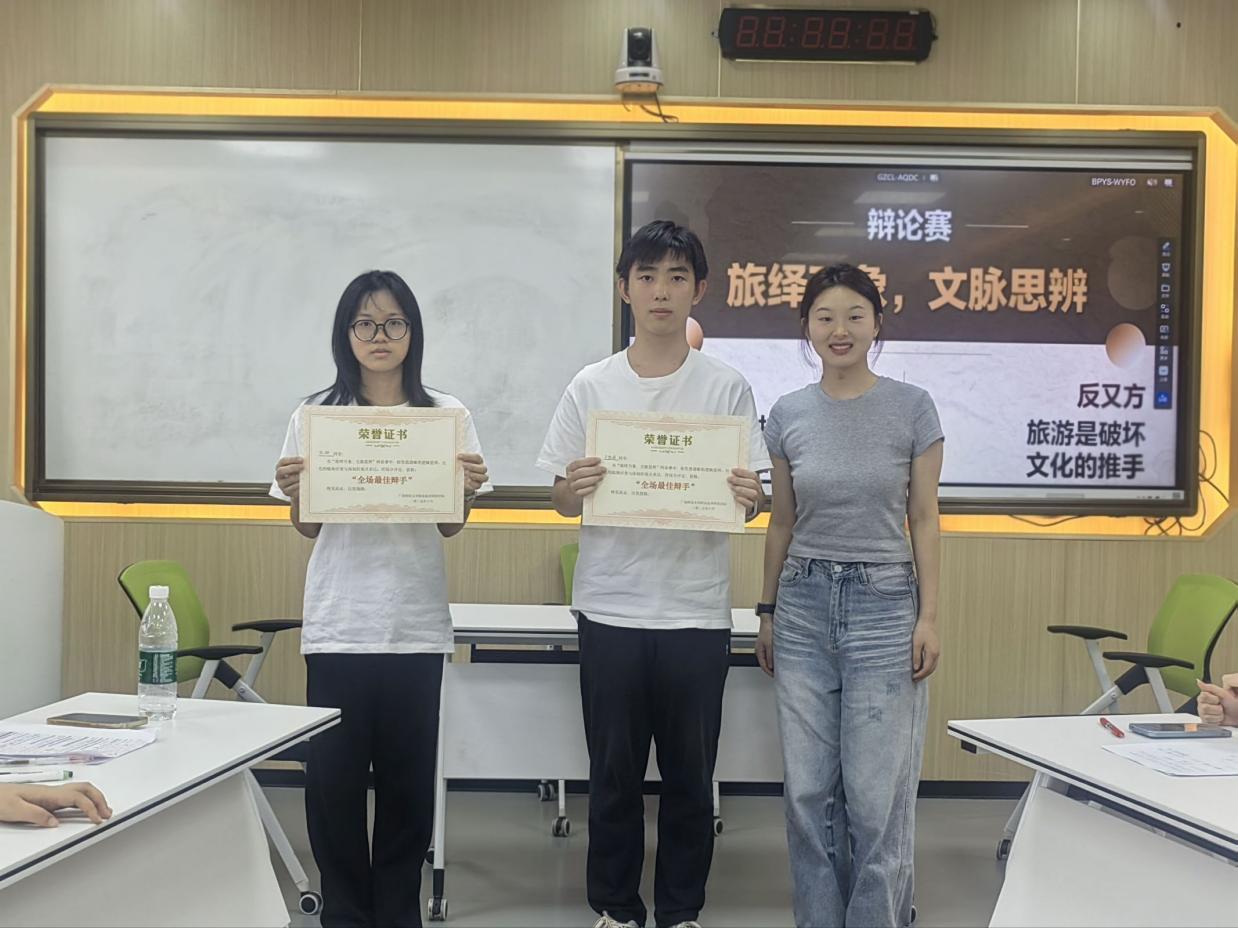 辩论围绕“旅游是保护与传承文化的动力,还是破坏文化的推手”这一辩题展开,正反两方激烈交锋。正方从文化遗产保护、旅游经济带动等角度论证旅游的积极作用;反方则针对游客行为失范、文化商品化、原真性流失等问题,犀利指出旅游可能带来的文化破坏。比赛涵盖立论、质询、自由辩论等环节,过程紧张刺激,双方辩手引经据典,现场气氛热烈。