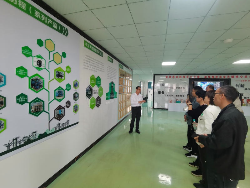 考察期间,广西科创集团公司董事长陪同参观了企业的甘蔗生产全程机械化实训中心、产品研发中心,并详细介绍了广西科创农业科技集团公司在产业前沿技术研发和产学合作协同育人方面的显著成就,聚焦地方产业经济发展需求,自主研发甘蔗整秆智能联合收割机、移动分布式甘蔗整秆收割机、甘蔗种抠芽机以及片芽育苗生产线等产品及其推广应用。广西科创集团公司依托产学研合作平台,着力构建农业大数据服务平台,推动甘蔗生产全程机械化、数字信息化转型。