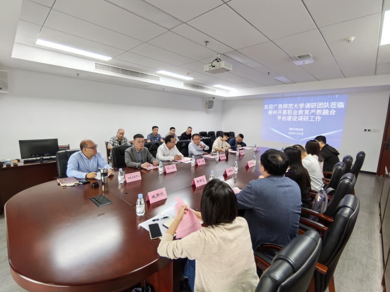 为深化产教融合、校企合作,推动职业技术师范学院转型发展,2025年11月7日,学院党政主要负责人、教学副院长、机械工程系和汽车工程系主任一行5人赴柳州开展产教融合平台建设调研和校企合作洽谈。柳州市教育局副局长赵从奎及相关科室负责人、柳州市龙头企业和职业院校产教融合型组织代表参与座谈。