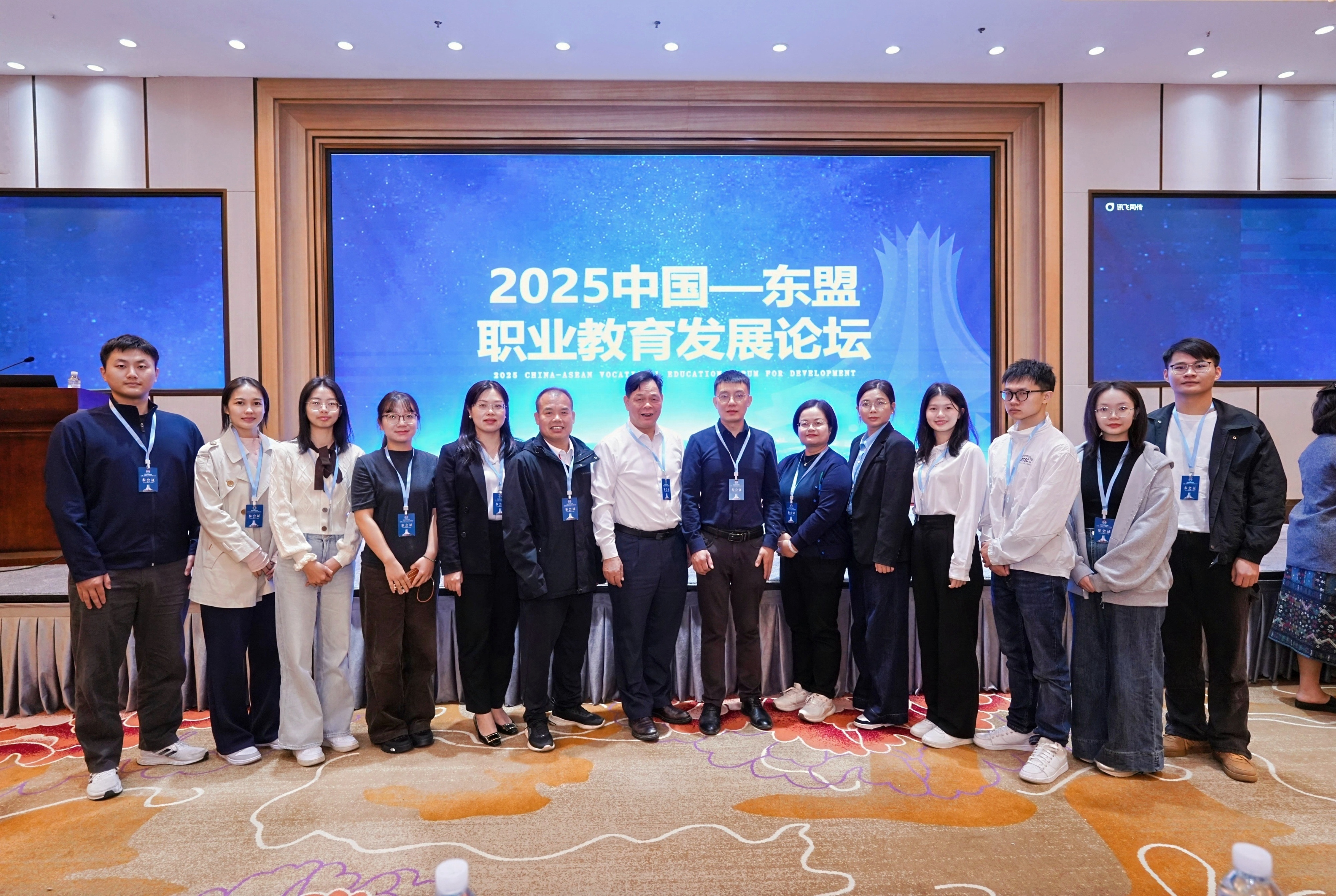 11月15日—16日,2025年中国—东盟职业教育发展论坛在南宁举行。此次论坛以“人工智能赋能中国—东盟职业教育高质量发展”为主题,采取“线下会议+线上中英文双语直播”的方式开展,汇聚了来自中国和马来西亚、印度尼西亚、缅甸等东盟国家的500余名代表。我校职业技术师范学院邓小华教授等10余位师生代表受邀参会。
