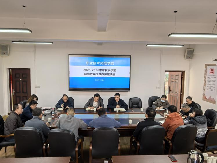 11月24日上午,职业技术师范学院在305会议室召开了期中教学检查师生座谈会。会议由学院分管教学副院长主持,学院相关领导、教师代表及各年级各专业学生代表共30余人参加。