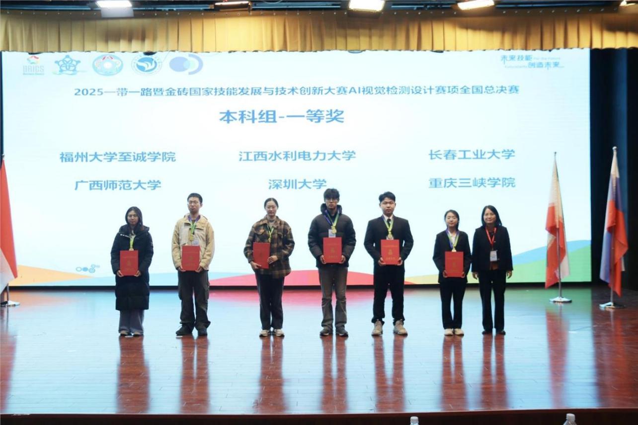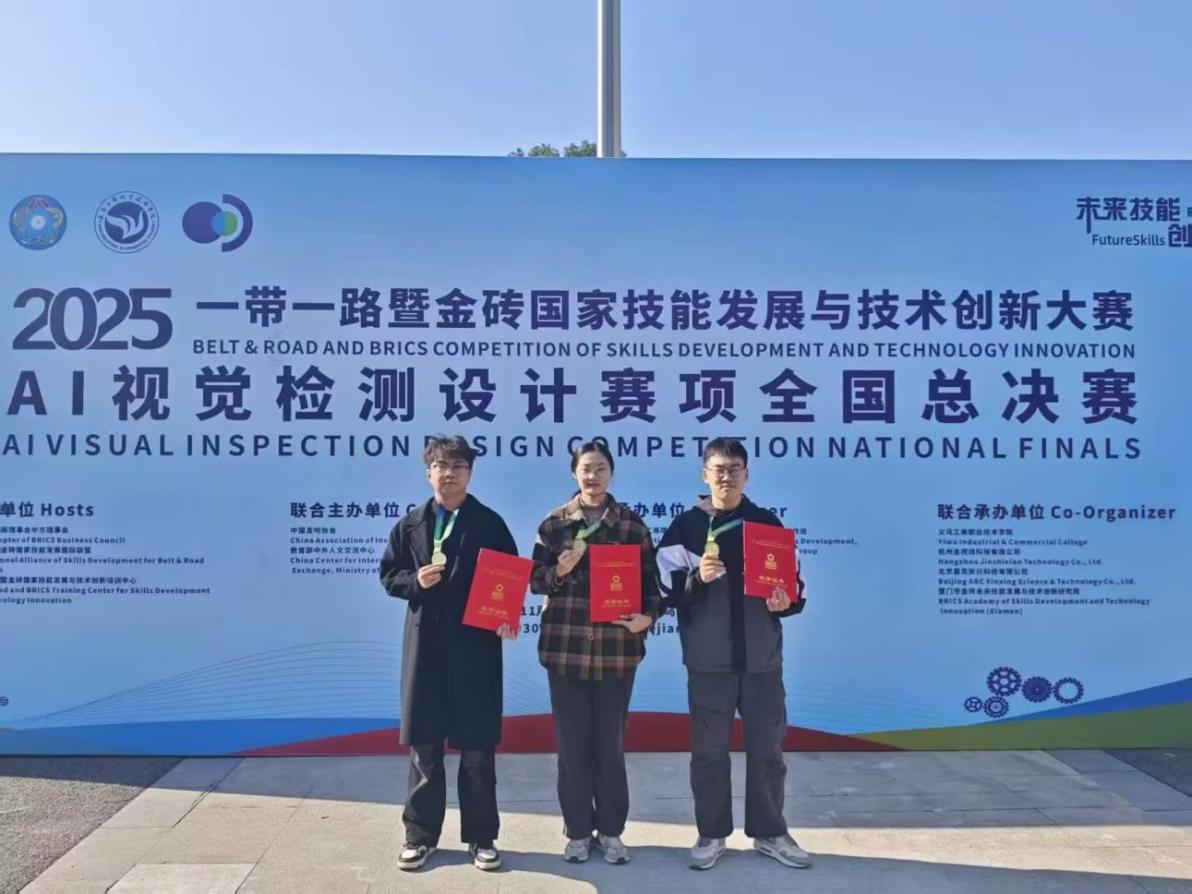近日,2025年第九届“一带一路”暨金砖国家技能发展与技术创新大赛AI视觉检测设计赛项全国总决赛在浙江省义乌工商职业技术学院圆满结束。我校职业技术师范学院参赛团队(孙璐、任旭莲、蒋明会)在机械工程系王日俊老师的悉心指导下,凭借扎实的专业知识和卓越的实践能力,从全国214所院校的1749名选手中脱颖而出,斩获本科组全国一等奖。