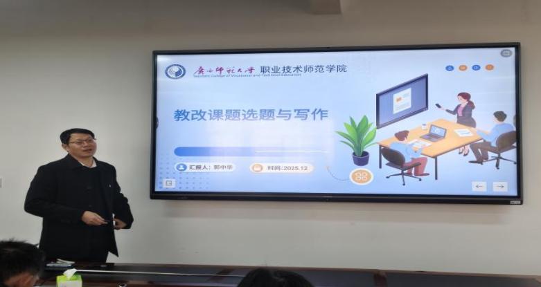 12月25日下午,职业技术师范学院举办“从选题到结题:教改课题全流程管理与实操”工作坊。本次活动由学院“区域职业教育治理现代化研究团队”主办,学院在研教改课题负责人及职业技术教育专业部分硕士研究生积极参与。