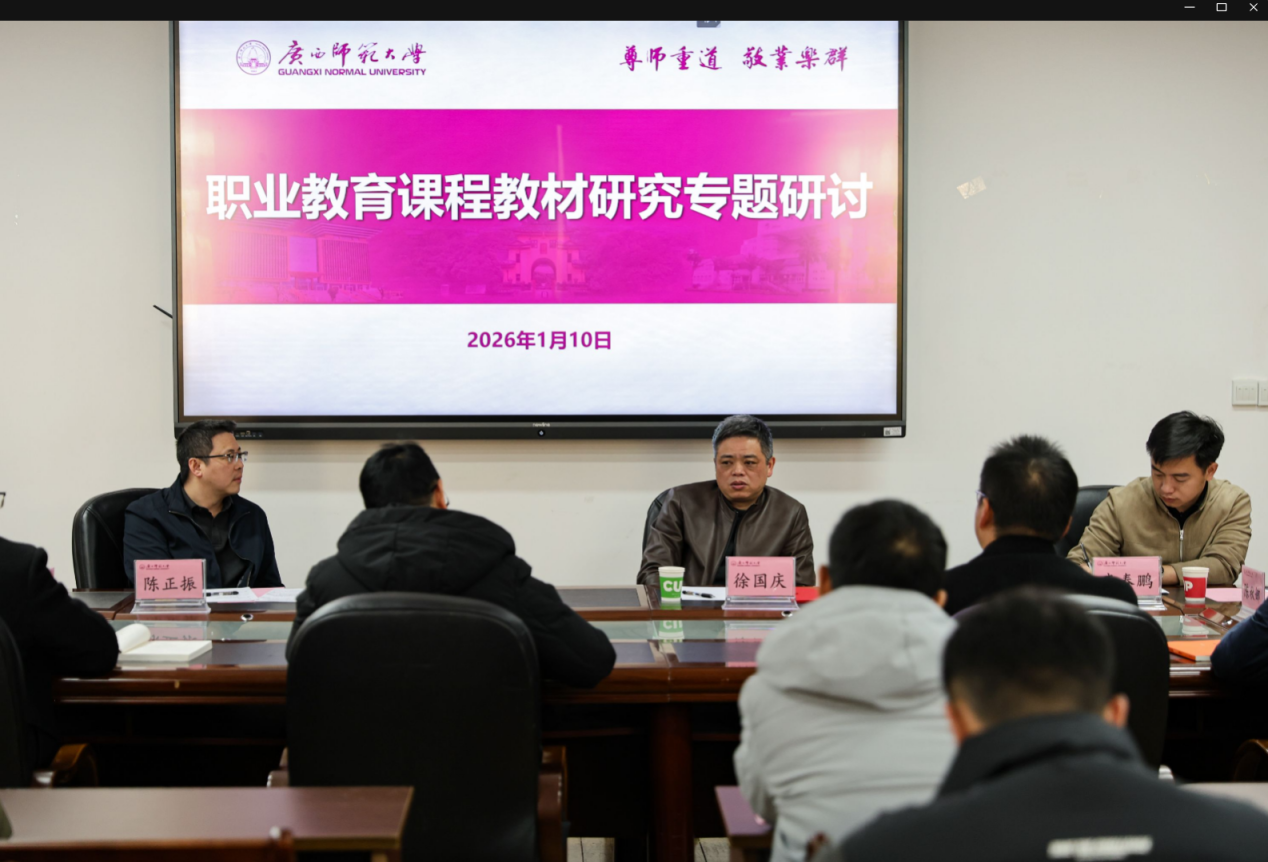 1月10日上午,广西师范大学--柳州职业技术大学职业教育课程教材联合研究中心在我校职业技术师范学院305会议室举行专题研讨会暨专家咨询委员会主任聘任仪式。华东师范大学特聘教授徐国庆和我校副校长黄晓娟、柳州职业技术大学副校长陈正振、广西金融职业技术学院副校长李春鹏及师生代表近50人参加活动。活动由职业技术师范学院行政主要负责人主持。