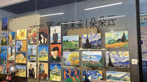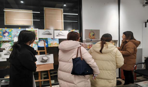 调研首站在桂林云朵朵|未来美学艺术培训学校,小队与机构老师深入交流。老师介绍了机构的办学理念与教学模式,她表示,儿童画教学不仅要沉浸式熏陶,更要在因材施教的同时让学生寓教于乐。团队了解到,机构既强调了数字化资产认证对儿童画版权保护的重要性,也表达了希望借助双画盲盒项目嘉奖优秀创作者,从而为特殊儿童搭建展示平台并募集捐助的期盼。