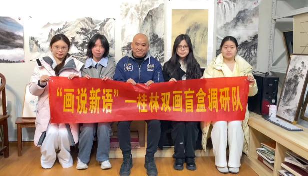 为响应“推动文化创新,激活传统生命力”的时代号召,1月7日,职业技术师范学院“丹青融梦”画盒调研队以桂林本土艺术文创为切入点,开展专项调研活动,深挖地域文化的当代价值,以青年视角探索艺术公益融合与国画产业升级路径。