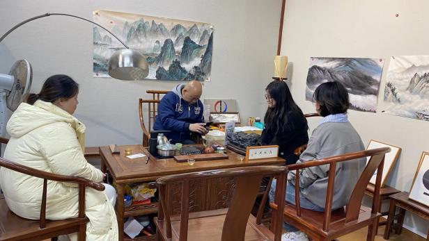 随后,调研队专程专访了桂林国画界知名大师唐忠民。在与大师的深入交流中,团队系统厘清了桂林国画的艺术特质、行业地位与发展瓶颈。唐忠民老师深入剖析了桂林国画 “走不出去” 的核心困境,并结合古玩、工艺品集散地的成功实践案例,为双画盲盒项目的产品设计、资源联动、市场推广提供了专业且极具实操性的建议。大师的倾囊相授,让团队对传统艺术的当代转化有了更为深刻的认知,为项目落地注入了宝贵的行业经验。