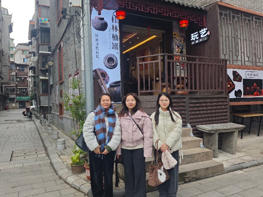 为深入贯彻落实习近平新时代中国特色社会主义思想,以实践行动探寻非遗文化传承发展之路,助力文旅融合与乡村振兴协同发展,3月3日,广西师范大学职业技术师范学院“桂北柚香”研究生调研团队聚焦桂北柚罐非遗技艺,赴桂林东西巷柚罐非遗手工馆、柘木镇文化艺术产业园开展实地调研,深入探索柚罐技艺活态传承与文旅融合实践的多元路径。