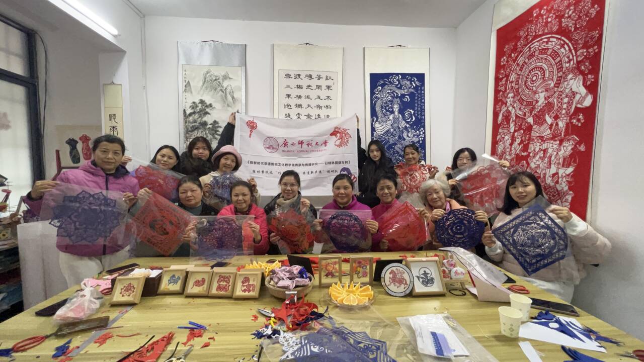 剪纸映古韵,数智焕新生。为探寻桂林剪纸非遗的传承脉络,破解传统技艺传播困境,以青年力量推动非遗活态传承,2026年1月,广西师范大学职业技术师范学院“巧手裁万象,非遗新声浪”调研队成员赴桂林市全州县老年大学、桂林剪纸协会等,采访了剪纸传承人唐爱春、闽江红等老师,围绕桂林当地剪纸非遗文化开展专项调研,用数智手段为古老剪纸技艺注入青春新声浪。