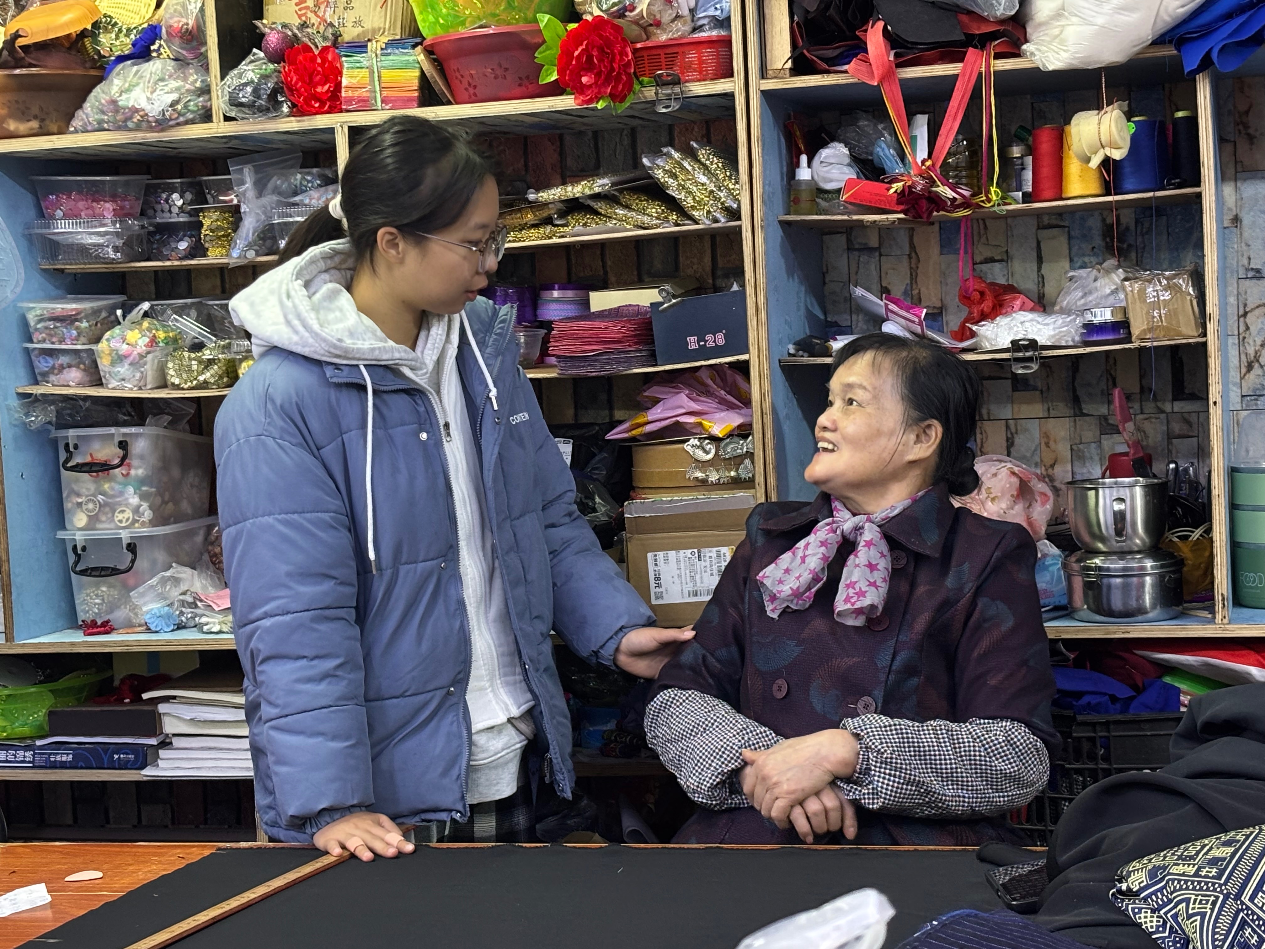 团队成员与刺绣传承人亲切交流