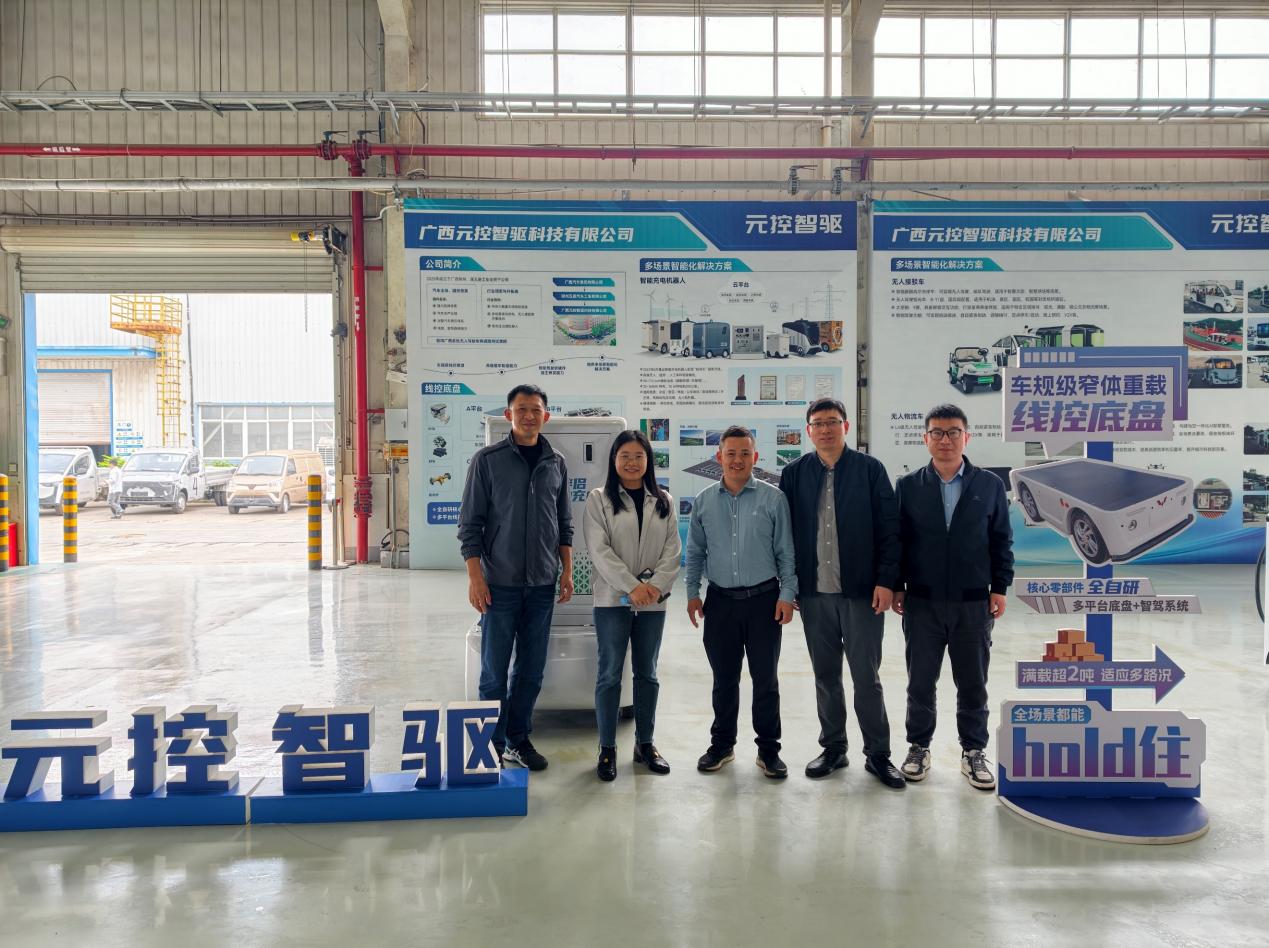 会后,学院一行来到五菱所属广西元控智驱科技有限公司现场调研,实地考察线控底盘及核心零部件、移动充电、无人接驳三大业务板块,了解企业在智能化、网联化、绿色化方面的最新发展成果。